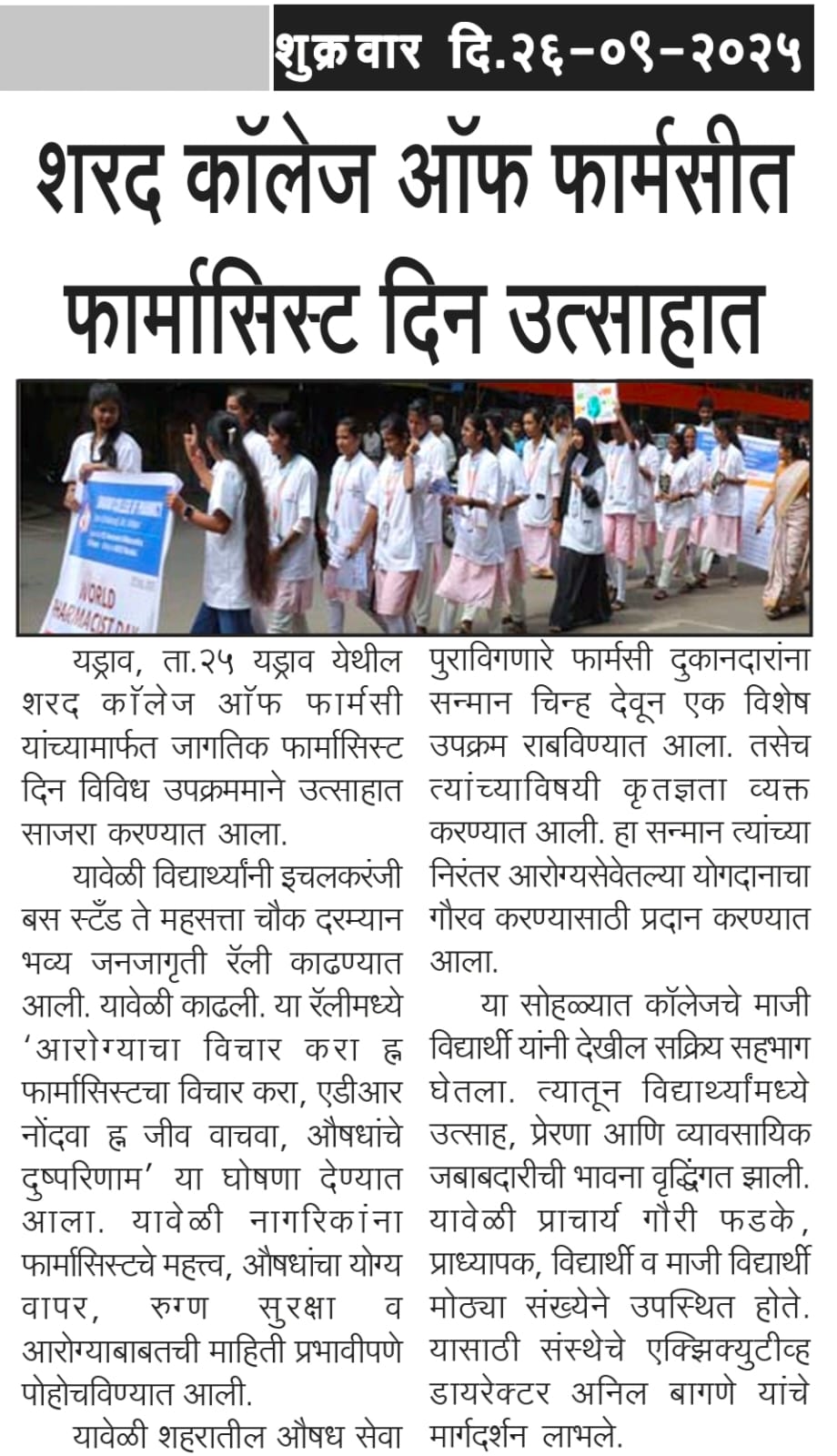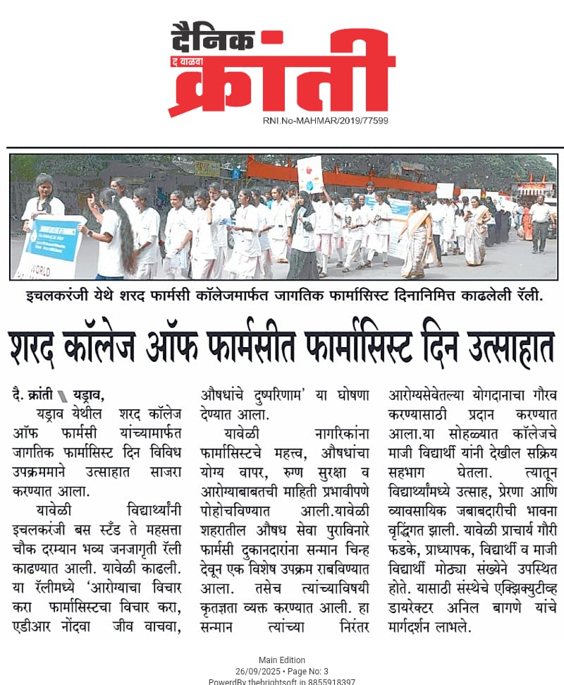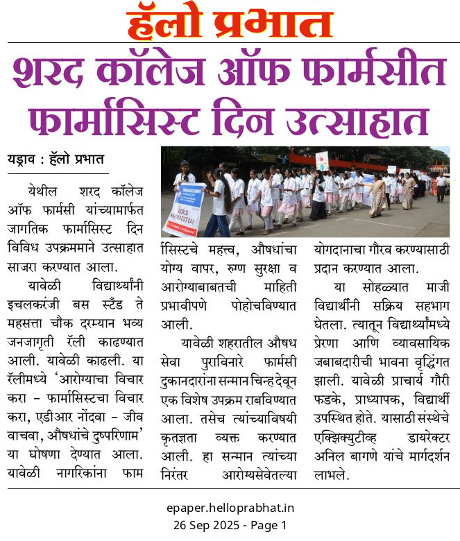 Pharmacist Day celebrated at Sharad College of Pharmacy